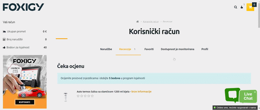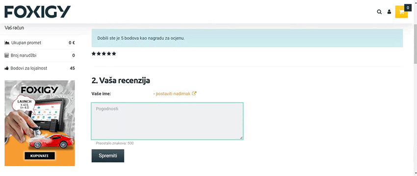 Za svaku recenziju kupljenog proizvoda dobivate do 15 bodova na svoj račun.