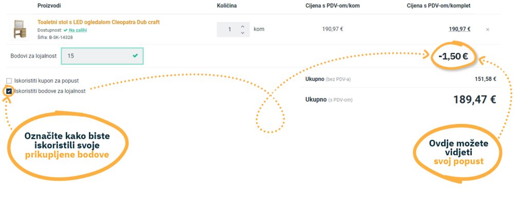 Zarađujete bodove vjernosti kao registrirani i prijavljeni korisnik na svom računu (link na račun)