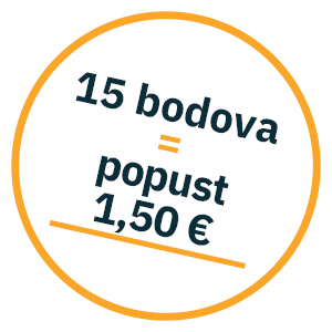 1 bod = 0,10 € popusta pri sljedećoj kupnji.